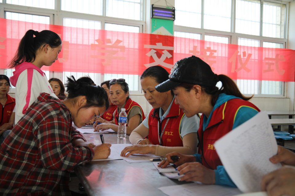 为了顺利完成这次的交接任务,开封市义工协会助学部的义工们做了大量的前期准备工作,组织了32名义工走访调查了该乡的21个自然村,了解孩子们的家庭生活和学习情况,对已经脱贫的家庭,及时通知捐助人停止资助,并要求每一位义工都要按照分工不同,各负其责,确保交接活动的顺利进行。