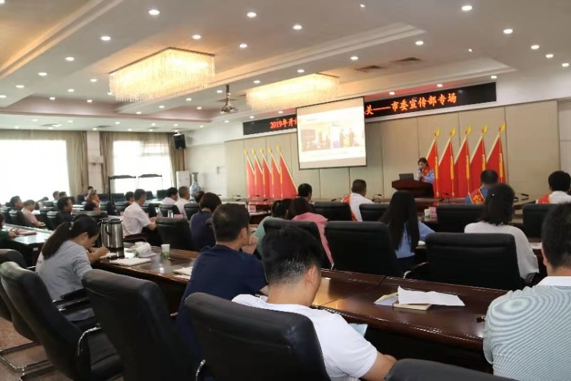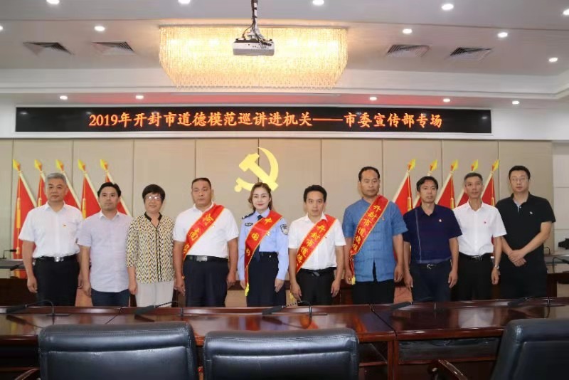 8月22日下午,在开封市委三楼会议室,由市文明办组织的2019年开封市道德模范巡讲进机关活动,为市委宣传部进行了专场巡讲,宣传部的主要领导、机关全体党员干部和部分市道德模范60多人聆听了报告。