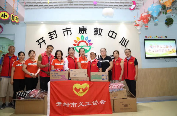 9月10日上午,开封市义工协会一行7人,驾驶着3辆私家车,带着价值3万多元的奶粉、蛋白粉、营养粉、果蔬铁、富锌凝胶糖果等爱心物资,来到市残联康教中心聋儿语训部,向住在这里的孩子们表示亲切的慰问。当天正值教师节,义工协会顾问、开封市好人、道德模范王大成特意为这里的每位老师准备一束手工花儿,向特殊教育的老师们表示节日的祝福。