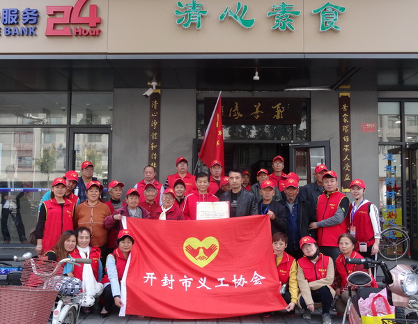 活动中,义工们用自己的私家车将老人们接到市祥符区朱仙镇启封故园,该园外联部的侯经理已早早等候,在她的帮助下,参加活动的全体人员全部免费进入园区。在园区里,义工们一个个搀扶着孤寡老人们登上一座座桥梁,跨过一道道门槛,浏览着湖光秋色,在大牌楼前,在四面牌坊的漕运码头前,在一个个精心制作的菊花造型景区前,为老人们留下了一张张精美的照片,笑声、交谈声,让老人们心中充满了义工们的爱。中午时分,义工们带领了老人们来到了位于市东司门的清新素食店,该店的冯经理亲自到门外迎接,并为15名孤寡老人和17名义工免费提供了一顿丰富的自助餐。