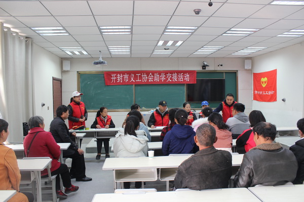 11月16日和17日两天,开封市义工协会的41名义工和资助人放弃周末的休息时间,分成5个助学金交接小组,驾驶着13辆私家车分别来到市祥符区曲兴镇、仇楼镇、八里湾乡、顺河回族区土柏岗乡和兰考县三义寨乡,为这些乡镇的33名品学兼优的贫困生发放了28400元的助学金。
