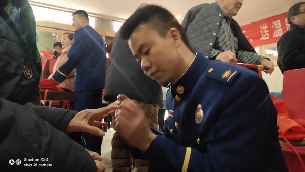活动中,杞县消防救援大队16名消防指战员结合通俗易懂的消防安全宣传页,为幸福里老年公寓的护理员详细讲解了安全消防常识,并帮助老人们整理室内、室外环境卫生,免费发放了近百个印有消防安全常识的手提袋及围裙;杞县畅想未来志愿者协会标榜美容美发公益团队、安康修脚连锁、幸福健康馆、东望集团志愿者服务队等多个公益团队的志愿者,分别为老人们提供了义务理发、修脚、颈肩理疗和文艺节目汇演;来自栋梁托管中心公益小天使团队的孩子们用精心准备的指甲剪为老人们修剪趾甲。一幅幅爱心画面,感动了老人,温暖了寒冬。