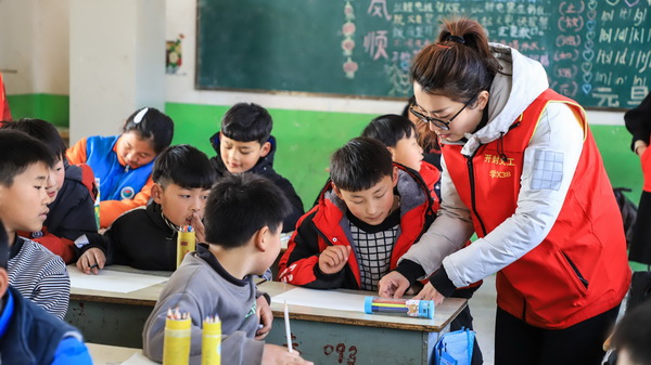 12月24日上午,开封市义工协会助学部支教小组一行四人,驾车行驶20多公里来到市祥符区范村乡赤仓小学,为该校四、五年级的40多名同学讲授了两个多小时的美术课。从事美术专业教育多年的义工张娟老师,在课堂上惟妙惟肖的授课方式深受师生交口称赞。