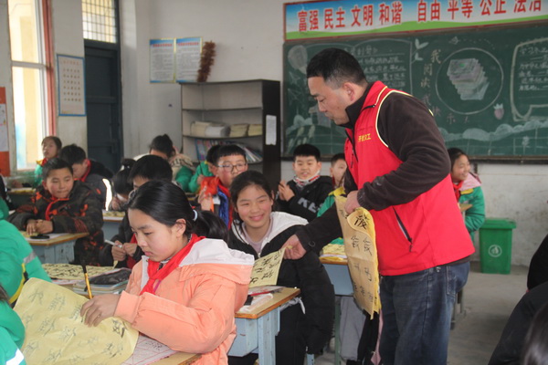 张宝峰老师说:“近年来,国家把传统文化教育列入中小学生学习的重要内容,我们将书法教育送到乡村学校,也是适应新时代要求,体现了义工奉献精神,我们也希望有更多的书法爱好者,发挥自身的优势,参加到义工协会的支教活动中来,为乡村学校孩子们传统教育开创出一片新天地。”