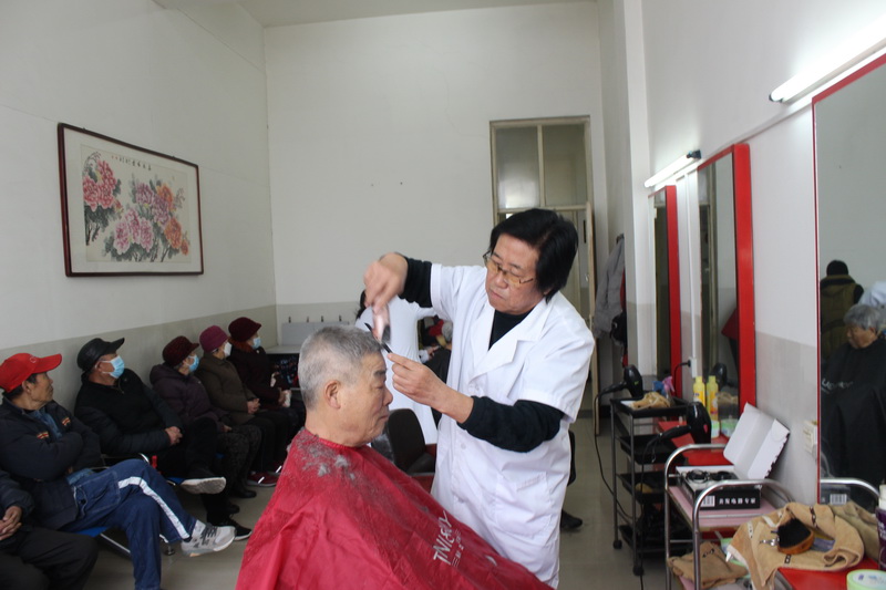 上午9点钟不到,社区义务理发室门口就排起了队,为了防疫的需要,前来理发的老人们都戴着口罩坐在间隔一米的椅子上等候理发。3名义务理发师稍作准备就开始为老人们服务了。剪子声——唰唰唰、推子声——嗡嗡嗡、电吹风——呼呼呼,精雕细刻一丝不苟,一上午就为46名老人修剪了头发。