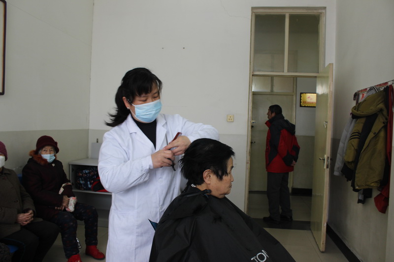 2月24日上午,为了庆祝学雷锋活动开展60周年,开封市火电厂社区的两名志愿者自带理发工具,在社区开展为老人义务理发活动。