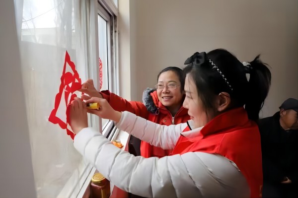 贴窗花 送春联 开封市义工协会开展敬老志愿服务活动