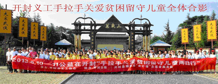 ![]() 开封市义工协会于2013年8月10日举办的第一届关爱贫困留守儿童手拉手活动合影