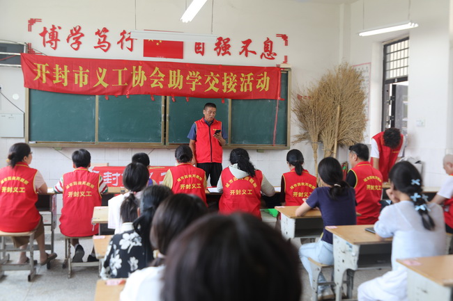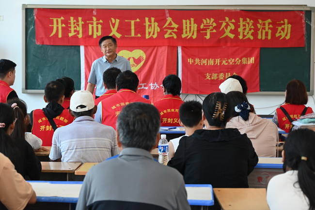 在袁坊乡第二中学的教室里,义工谢海艳主持了这次交接仪式,并介绍了义工协会的助学历程。义工协会李天忠秘书长代表协会致辞:“感谢校方的大力支持,感谢爱心资助人及公益团队的鼎力支持,你们的奉献就是对被资助学生的鼓励与鞭策。”袁坊乡第二中学孙文凯校长代表校方致辞:“希望你们继续保持乐观向上的精神风貌,努力学习,不辜负资助人的希望,将这份爱心传递下去。”河南开元空分集团有限公司王秀娟总经理致辞说:“我们公司二十多年来一直坚持将公益融入企业文化建设的优良传统,并感谢义工协会提供了这个公益平台,我们一定会携起手来将助学活动越走越远”;开封朗瑞机械有限公司周总嘱咐孩子们:“要认真学知识,掌握技能,家长们一定要帮孩子们完成学业,知识改变命运”。学生代表马忠慧发言说:“多年来,义工协会和各位资助人给予我的无私关怀与鼎力相助,如同冬日暖阳,不仅照亮了我的生活,更温暖了我的心房,你们的善行义举,是我学习的榜样。未来,我也希望能将这份爱心传递下去,在自己力所能及的范围内帮助他人,回报社会给予我的温暖。”