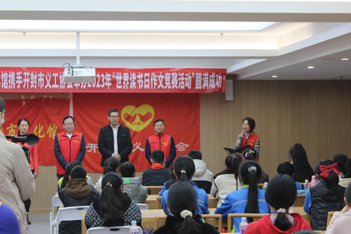 今年4月23日是第28个“世界读书日”。为了贯彻落实党的二十大精神,让生活在乡村的小学生们更好得开展读书活动,22日上午,开封市义工协会在市文化馆大力支持下,在该馆非遗研讨室成功举办了第三届以“以书为友 岁月留香”为主题的爱心流动书橱学校作文竞赛活动。开封市义工协会执行会长高永涛在开幕式上致辞说:“首先要感谢所有奋斗在农村教育系统的老师们,在艰苦的环境中,依然坚持培养生活在农村的孩子们;其次要感谢广大爱心单位和爱心人士,感谢他们捐款捐物,努力支持社会公益事业;第三要感谢广大奋斗在社会公益一线义工们,他们的辛勤奉献,使社会公益活动有了蓬勃的发展。同时也希望生活在农村的孩子们,一定要加倍努力学习,创造出更好的未来。”开封市文化馆副馆长郭碧贞、市博物馆志愿者委员会主席姜朝辉、市哥哥食品有限公司总经理杜永胜、河南萌然网络科技公司总经理杨智也分别鼓励孩子们一定要努力学习,努力读书,在读书中快乐,在快乐中成长。市祥符区的8个乡镇41所乡村小学的65名同学参加了此次竞赛活动。