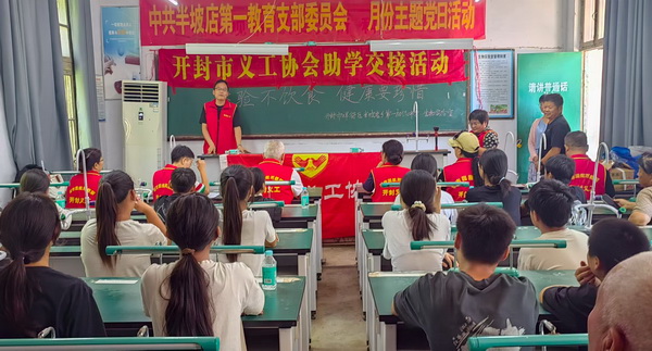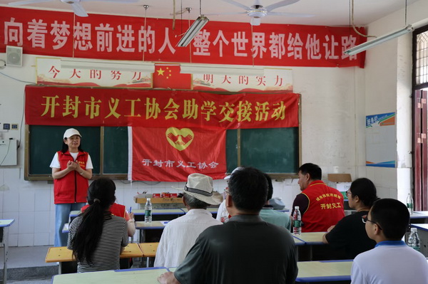 (公益记录者 徐建华报道)7月12日上午,星期六,烈日炎炎,晴空万里。开封市义工协会一行14人,冒着酷暑利用周末休息时间,驾驶着4辆私家车,兵分两路,一路由高永涛会长带领8名义工,驱车38公里,来到了市祥符区半坡店乡第一中学,为该乡21名品学兼优的生活遇困生发放了16800元的爱心助学金;另一路由义工李强带领5名义工,驱车20公里,来到祥符区八里湾镇第四中学,为该镇的4名品学兼优生活遇困生发放了3400元的爱心助学金。