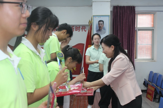 ![]() 市政协常委、民盟市委会专职副主委许娜向同学们颁奖