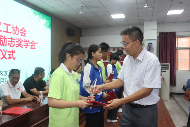 此次颁发的奖学金共6万元,其中:一等奖5名,每人奖励5000元;二等奖5名,每人奖励3000元;三等奖10名,每人奖励2000元。出席颁奖仪式的领导许娜、李全永、陈传阳、彭辉、谷冷冷、刘博、陈传诺等分别向获奖的20名优秀毕业生颁发了奖学金、奖杯和荣誉证书。市义工协会副会长范俊红代表协会向刘兰芳女士颁发了荣誉证书;学生家长代表向刘兰芳女士、市义工协会和实验中学分别赠送了锦旗。