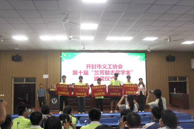 刘兰芳女士出生在禹王台区汪屯乡马头村,是实验中学的优秀毕业生,大学毕业后,经过10多年的打拼,取得了一定的成绩。2015年她就开始参加开封市义工协会的助学活动,十年来,她已为40多名品学兼优且家庭生活困难的学生发放了30多万元爱心助学金。2016年5月,她联手开封市义工协会在母校设立了“开封市义工协会兰芳励志奖学金”,用于奖励成绩优异的同学们。奖学金的设立,极大地激发了全校师生努力工作、刻苦学习、不断进取的积极性。到目前为止,刘兰芳女士已为该校的202名毕业生发放了62万元的奖学金。