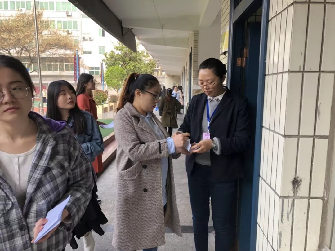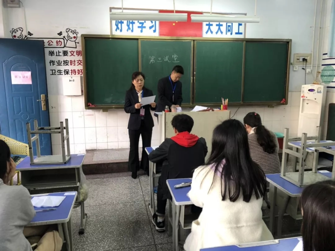 笔试考点共设立7个考场,每个考场安排两名监考人员,监考人员在考前认真核对考生信息,宣读考生须知,切实负起监考责任,严格要求考生遵守考场纪律;监察人员对本次笔试进行全程监督,保证考试的公平公正;综治办负责维持笔试考点的现场秩序,确保整个笔试的安全顺利进行;同时安排工作人员,专门为考生做好服务工作。