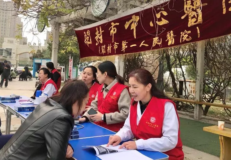 4月11号下午,开封市中心医院肿瘤中心下社区到金耀绿城小区作肿瘤科普宣传活动,为小区群众带来肿瘤防治的科普宣传知识;4月16日下午,再次来到汴京公园进行肿瘤科普知识宣传及义诊活动,除了为百姓解疑答惑外,还为群众带来了宣传材料;4月17号上午,开封市中心医院肿瘤诊疗中心第三次来汴京公园参加由卫建委组织的全市肿瘤宣传周肿瘤义诊活动,市卫建委领导还专门到现场来慰问广大参与志愿者义诊活动的各位专家人员。