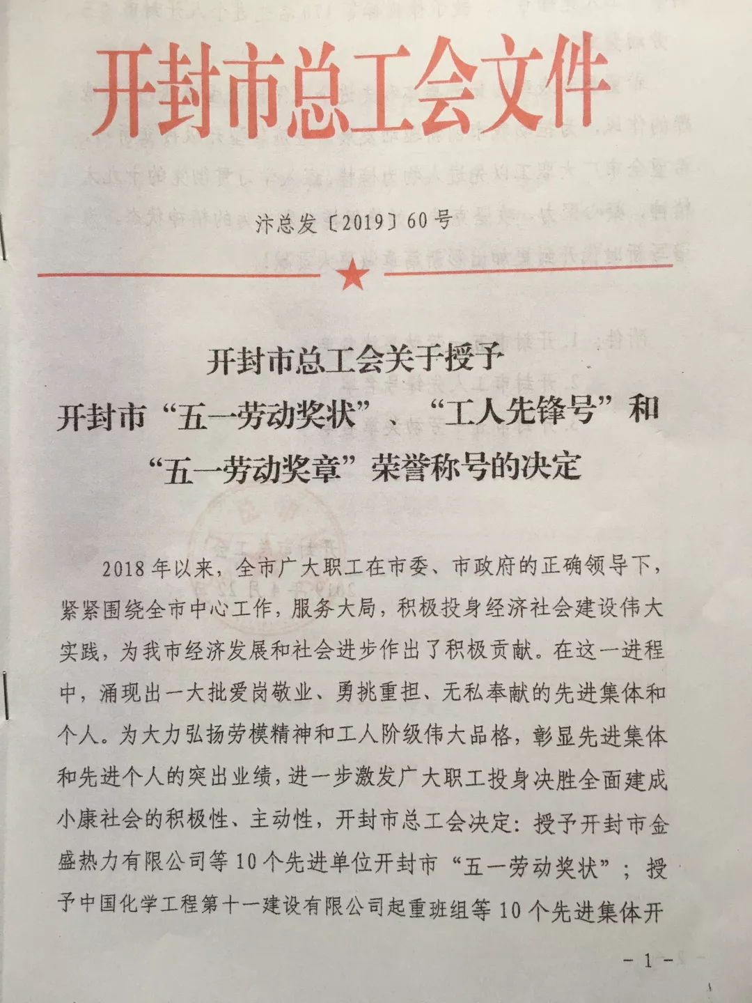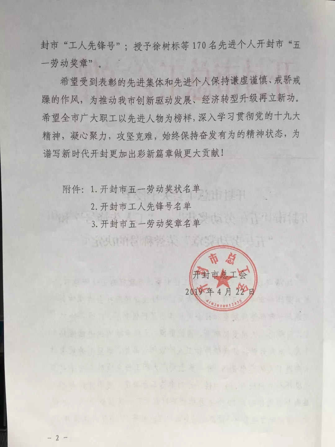 开封市总工会关于授予开封市“五一劳动奖状”、“工人先锋号”和“五一劳动奖章”荣誉称号的决定
