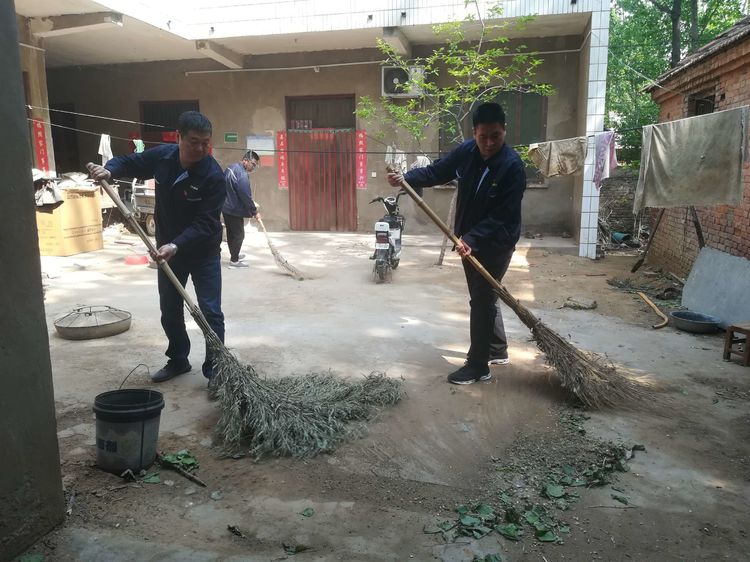 随后,公司帮扶责任人在村干部和驻村工作队李文锋的带领下,分别来到低保困难户吴满生和马罗家中。在于红的带领下,帮扶人员帮助贫困户打扫了庭院卫生,大家有的拿着大扫帚扫地;有的在院里洒水;还有的帮助摆放桌椅,大家一边干活儿一边和贫困户交谈。马罗的三个儿子先后去世,妻子身体也不好,有个小孙子和他们一起生活,他本人半身不遂已经丧失了劳动能力,只能依靠妻子帮助日常生活,常年依靠两个女儿的偶尔接济艰难度日。于红详细询问了他的生活情况和家庭状况,并嘱托老人要保养好身体、保持乐观的生活态度、常和女儿们联系。然后,帮扶人员又来到贫困户马矿家的旧址进行了查看,其原先的房屋已被拆除,露出来一片空地。马矿和妻子原来居住的房屋是路边一处破旧不堪的危房,孩子们成家后先后都和老两口断绝了来往。公司扶贫工作队得知情况后,积极与村委会人员一起跟孩子们做工作,促使子女们兑钱把老两口送到了养老院,拆除了岌岌可危的旧房屋,使老两口有了安度晚年的去处。