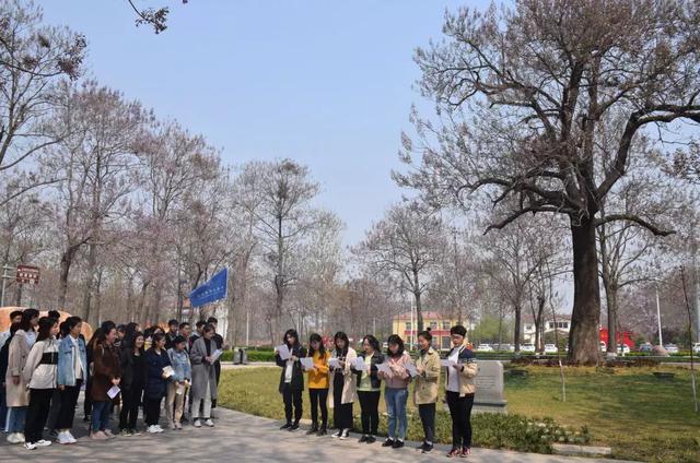 在焦裕禄墓前,全体师生鞠躬哀悼,深切缅怀焦裕禄同志的光辉事迹,祭思焦裕禄同志的崇高风范。随后,大家在党旗下重温入党誓词。在焦桐广场前,讲解员为大家介绍了焦桐背后的故事。经过多年发展,焦裕禄同志生前倡导栽种的泡桐树现在已经成为兰考县经济发展的支柱产业之一,焦桐也成为焦裕禄精神的象征。在焦桐下,举行了以“缅怀焦裕禄同志,学习焦裕禄精神”为主题的诗歌朗诵会。