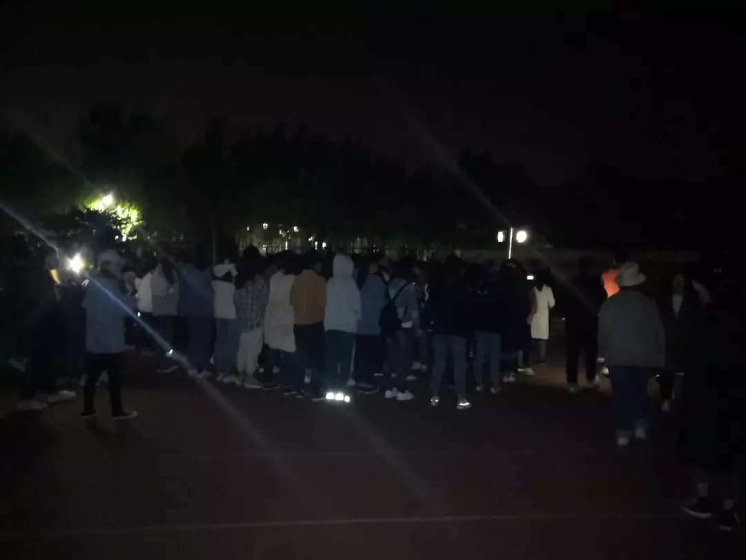 天黑黑,路灯辉映下,依旧集合在一起训练。