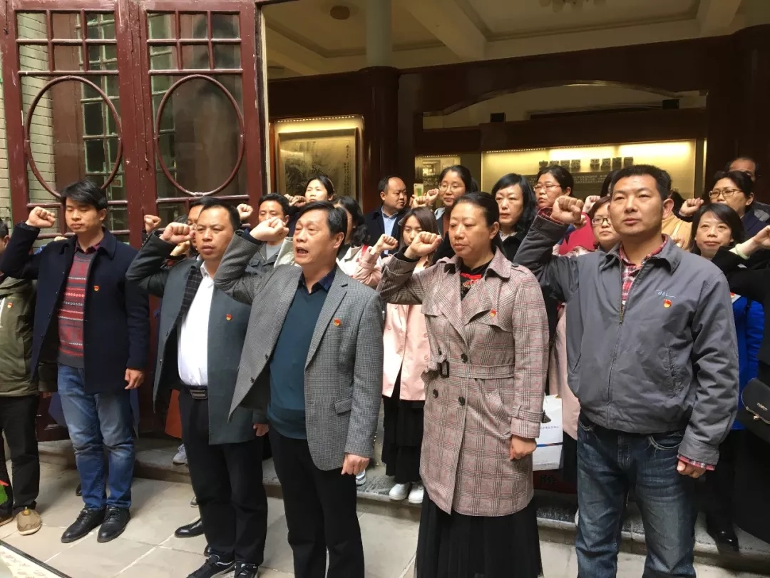 参观学习后,杜孝建书记代表开封五中党支部为刘少奇铜像献花。然后在杜书记的带领下,面对鲜红的党旗,全体党员重温入党誓词,肃立默哀、三鞠躬,表达对一代伟人的无限敬意和缅怀。